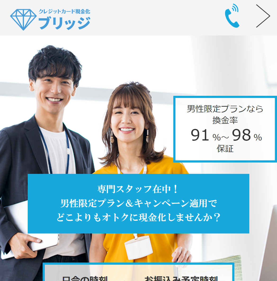 | どんなときもクレジット | 98.0% | 5分 | 9:00〜18:00 | 新規・乗換大幅UP |